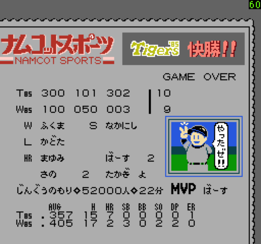 ついでに阪神 '85 のデータも載せました。